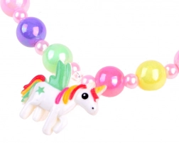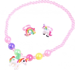 Bunte Perlenkette mit Einhorn-Anhänger und zwei Ringe vervollständigen das Kostüm und unterstützen das magische Rollenspiel.