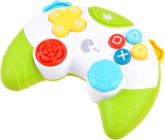Der farbenfrohe Kinder-Controller im Konsolenstil bringt Lichter, Melodien und Soundeffekte, die Feinmotorik, Gehör und Vorstellungskraft fördern. Dank der ergonomischen Form für kleine Hände und der realistischen Tastenanordnung genießen Kinder sicheres Rollenspiel, ganz ohne den echten Controller zu benutzen.