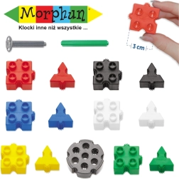 Entdecken Sie den kreativen Baukasten MORPHUN STARTER mit 600 farbigen Teilen, die sich von oben und an den Seiten wie ein Puzzle verbinden. Dank einfacher Verbindung, Bewegungselementen und Rädern erstellen Kinder spielend 2D- und 3D-Modelle. Ideal für größere Kindergruppen, fördert Feinmotorik, räumliches Vorstellungsvermögen und Lernen durch Spiel.