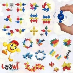 Das LOOWI Konstruktionsset mit bunten Kugeln und mehreren Verbindungspunkten bietet endlose Baumöglichkeiten ohne kompliziertes System. Alles ist in einem transparenten Schraubbecher verstaut, sodass die Teile stets griffbereit sind und der Überblick über die Menge erhalten bleibt. Dank der hochwertigen Verarbeitung sind fertige Modelle stabil und halten auch langem Spielen stand.