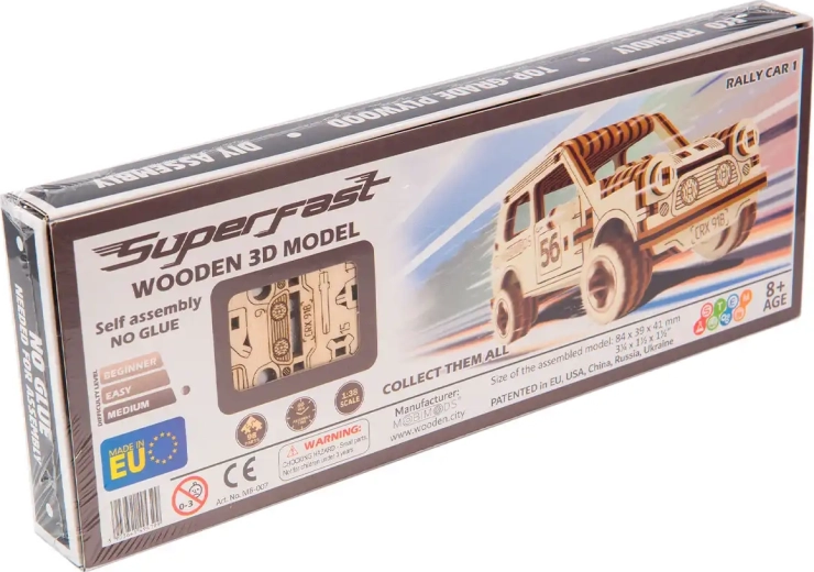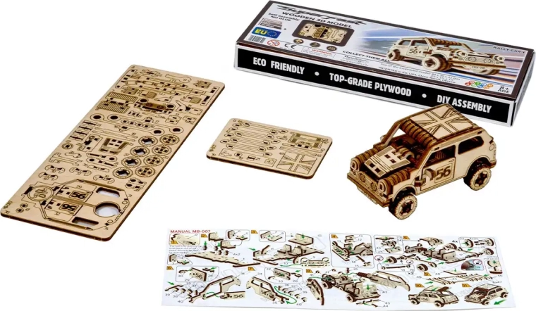 Das Set enthält 98 Teile und lässt sich in etwa 40 Minuten zusammenbauen. Der Schwierigkeitsgrad ist einfach, daher ist das Modell ein idealer Einstieg in die Welt der Holzbausätze und ein schönes Projekt für einen gemeinsamen Familienabend. Kompakte Maße (84 × 39 × 41 mm) ermöglichen die Platzierung nahezu überall.