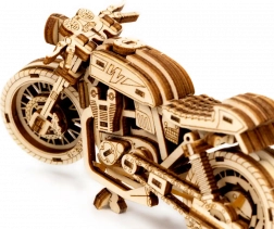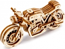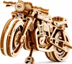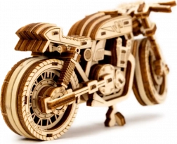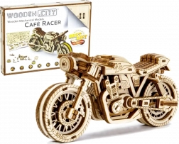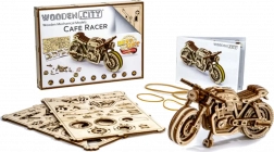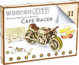 Das Café-Racer-Motorrad von WOODEN CITY ist ein detailreich ausgearbeitetes Holzmodell im Maßstab 1:16, das Ihren Schreibtisch oder Ihre Vitrine belebt. Dank Gummibandmotor und Rückzug-Mechanismus bewegt sich das Modell vorwärts und rückwärts, erreicht eine Fahrstrecke von etwa 1 Meter und gewährt Einblick in die echte Mechanik der Zahnräder.