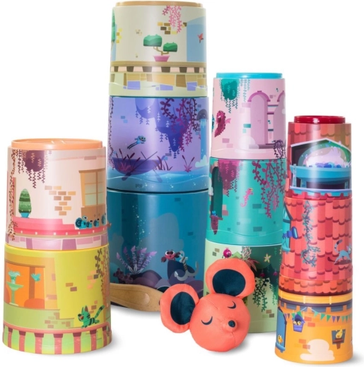 Die kleine Maus und ihr fantastisches Abriss-Schloss – dieser Becherturm ist reine Fantasie! Kinder können aus 11 Bechern im Handumdrehen einen riesigen Turm bauen. Auf den Bechern sind Illustrationen verschiedener Räume eines Märchenschlosses, in unterschiedlichen Farben und mit vielen Figuren.