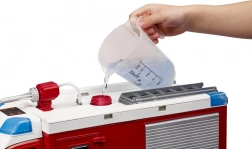 Das detailreich gestaltete Rettungsfahrzeug im Maßstab 1:16 bietet authentische Funktionen, die Kinder lieben. In die Kabine passen drei Feuerwehrleute, weitere drei finden hinten Platz. Transparente, bruchsichere Fenster, öffnende Türen und seitliche Schränke mit Klapptüren erhöhen den Realismus beim Spielen.