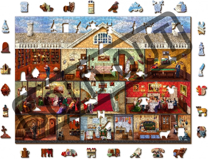 Erleben Sie faszinierende Holzpuzzles von der Marke WOODEN CITY mit dem Motiv eines viktorianischen Anwesens. Dieses Puzzle ist nicht nur beidseitig, sondern jede Seite bietet eine andere Art des Zusammenfügens - Bild auf der einen Seite und Muster auf der anderen.