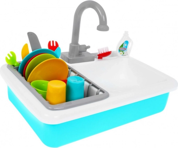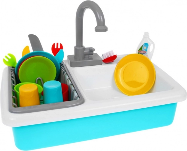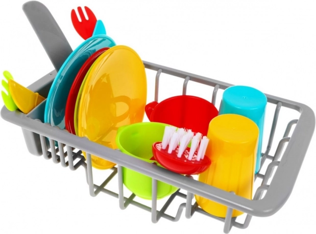 Kinderspüle mit Wasserhahn und Trockner mit Geschirrset