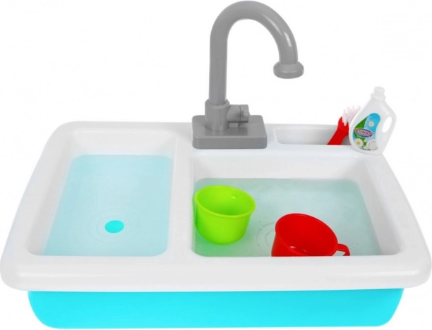 Die Spüle mit Wasserhahn simuliert eine echte Küchenspüle und fördert das nachahmende Spiel.