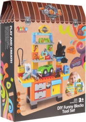 Dieses kreative Werkstatt-Bauset bringt Kindern realitätsnahes Spiel rund um die Autoreparatur. Mit 92 hochwertigen Kunststoffteilen entsteht eine bunte Werkstatt mit Hebebühne, „Reifenservice“ und Werkbank. Ein kleines Auto ist ebenfalls dabei, damit die jungen Mechaniker ihre Fähigkeiten sofort ausprobieren können.