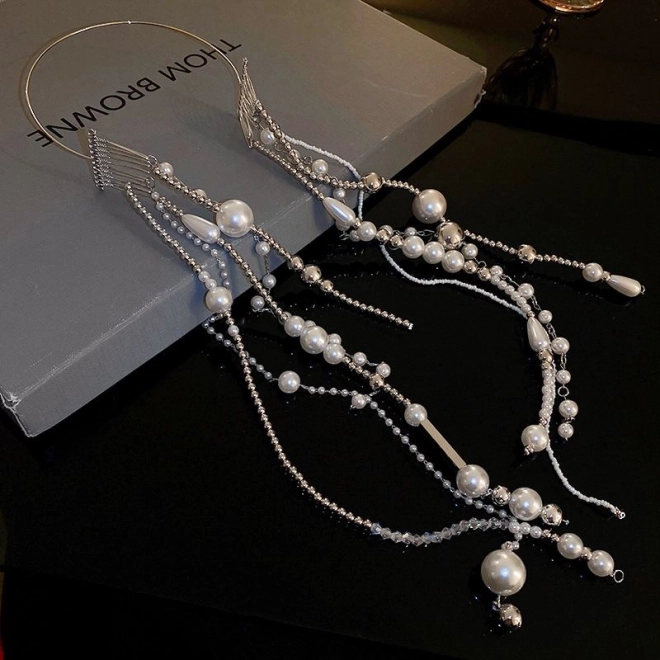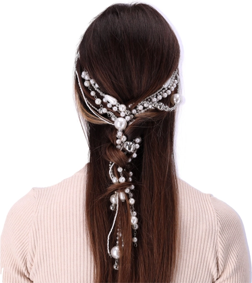 Das Haarband bietet einen raffinierten Look durch künstliche Perlen und Ketten.