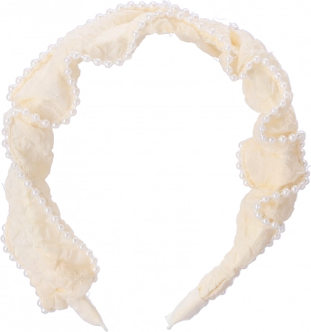Dieses weiße Stirnband mit feinen Perlen ist ein stilvolles Accessoire, das selbst schlichte Outfits aufwertet. Der textile Bezug mit Raffungseffekt und die dezente Perlenkante wirken elegant und dennoch zurückhaltend. Harmoniert wunderbar mit offenem Haar, Pferdeschwanz oder Dutt.