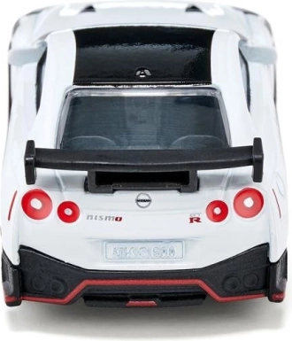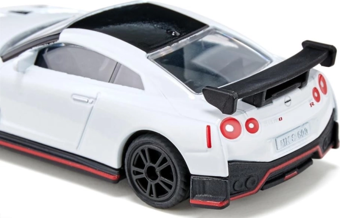 Der Nissan GT-R Nismo ist ein supersportliches Fahrzeug für alle, die beeindruckenden Stil und Leistung lieben. Das Topmodell von Nissan mit über 600 PS verspricht reine Aerodynamik und Nervenkitzel. Dank der klassischen weißen Karosserie, der Sportfelgen mit gummierten Reifen, dem Heckspoiler und den ausgefeilten Designdetails wie der roten Linie entlang des Randes verwandelt dieses Auto sowohl die Straße als auch den Kinderzimmerboden in eine Rennstrecke.