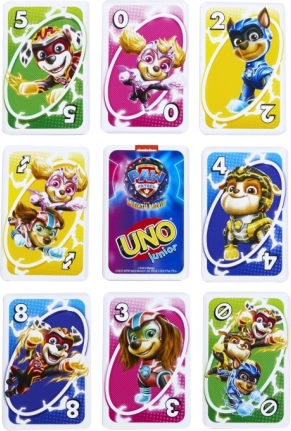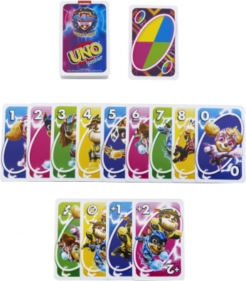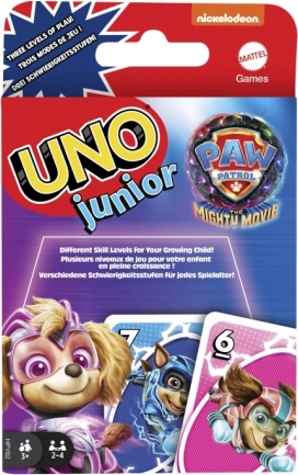 Das beliebte Familienspiel UNO erscheint in einer Kinderversion mit Motiven aus dem Paw-Patrol-Film. Bunte Karten mit großen Zahlen und Figuren erleichtern das Erkennen und fördern das Lernen von Farben, Zahlen und grundlegenden Spielprinzipien.