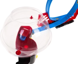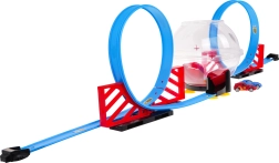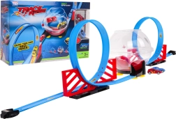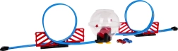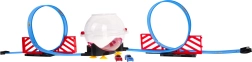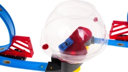 Bauen Sie Ihre eigene Rennarena mit zweispuriger Strecke, zwei Loopings und einer zentralen transparenten Kugel. Dank zweier unabhängiger Strecken können Kinder echte Geschwindigkeitsduelle austragen. Durch Zurückziehen des Autos wird der Pull-Back-Antrieb aktiviert, das Auto startet in den Looping, rast in die Kugel und führt darin spektakuläre Rotationen aus.