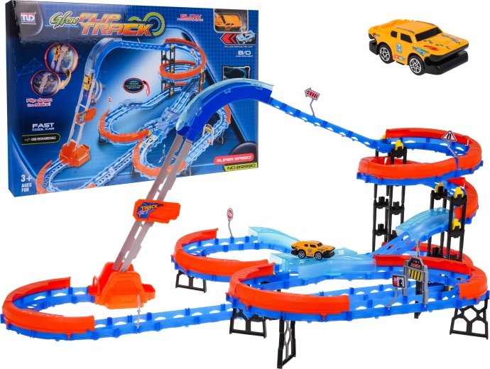 Rennstrecke mit Leiter, 90 Teile, mit LED-Auto