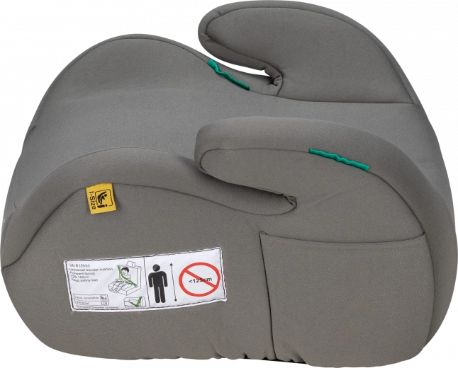 Die Sitzerhöhung erfüllt die neueste europäische i-Size-Norm für maximale Sicherheit und eine korrekte Gurtführung bei wachsenden Kindern.