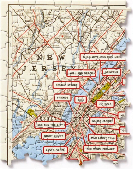 Tauchen Sie ein in die Welt von Film und Fernsehen mit einem originellen Panorama-Puzzle, das die bekanntesten Orte New Yorks aus Kultfilmen und Sitcoms festhält. Durch das längliche Format kommt jedes Detail der Illustration schön zur Geltung und nach dem Zusammenlegen wird es zur stilvollen Dekoration Ihres Interieurs.