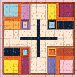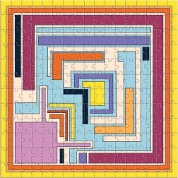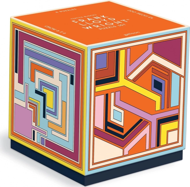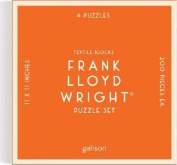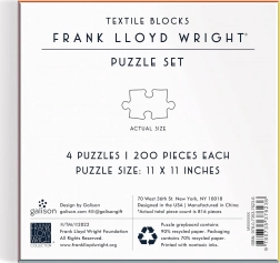 Jedes Puzzle zeigt ein anderes ikonisches Haus von FRANK LLOYD WRIGHT, inspiriert vom System der Textilblöcke – La Miniatura, Community Playhouse, Freeman House und Ennis House.