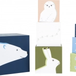Wir präsentieren einzigartige Stapelwürfel Arktis, die Bildung und Spiel kombinieren. Mit zehn Würfeln aus robustem Karton mit FSC-Zertifizierung bieten sie Kindern eine unterhaltsame Möglichkeit, Grundlagen von Zahlen, Farben und Größen zu erlernen. Jeder Würfel ist mit einem Polartiermotiv und einer Zahl verziert, was sowohl Kreativität als auch Feinmotorik kleiner Baumeister unterstützt.