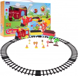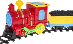 Zum Set gehören 2 Waggons (mit Kohle und mit Baum), Rundschienen mit einem Durchmesser von ca. 72,5 cm sowie Zubehör in Form von Schildern, Kegeln und Bäumchen. Die einfache Montage und die robuste Ausführung garantieren stundenlangen Spielspaß und fördern die Vorstellungskraft.