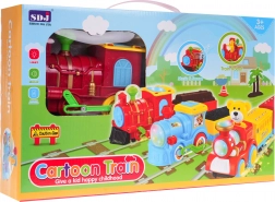 Dieses bunte Zugset aus Kunststoff erfreut jeden kleinen Lokführer. Die Lokomotive ist mit blinkenden Lichtern vorne, oben und an den Seiten des Führerhauses ausgestattet und erzeugt während der Fahrt realistische Geräusche. Ein besonderes Highlight ist das öffnende Führerhaus, aus dem sich während der Fahrt eine Roboterfigur herausbewegt.