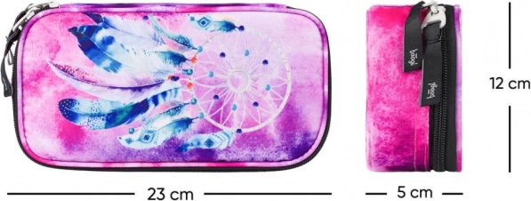 Stylisches Schuletui mit Dreamcatcher-Motiv, ideal für die tägliche Schulausstattung. Bietet eine stabile Konstruktion, eine aufklappbare Innenklappe für eine übersichtliche Aufbewahrung von Schreibutensilien sowie eine praktische innere Reißverschlusstasche. Eine Tasche für den Stundenplan ist ebenfalls vorhanden. Das Etui wird ohne Inhalt geliefert.