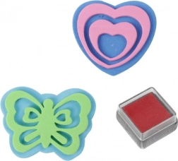 Leichte Schaumstoffstempel und ein rotes Stempelkissen erweitern die Möglichkeiten der Dekoration. Geeignet für Papier und DIY-Projekte kleiner Kreativer.