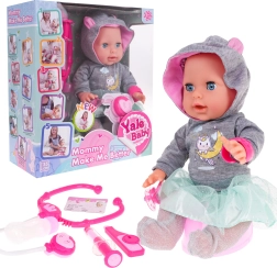 Dieses Spielzeug fördert Verantwortungsbewusstsein und Fürsorge. Zum Set gehören ein magnetischer Schnuller und medizinisches Zubehör, mit dem Ihr Kind Arzt spielen kann. Batterien sind nicht im Lieferumfang enthalten (3 x AA 1,5 V für die Puppe und 2 x AG13 für das Stethoskop).