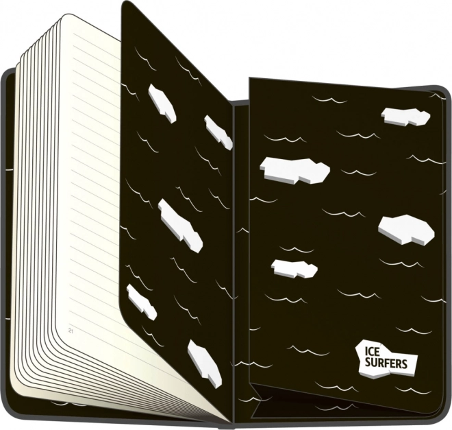 Das Notizbuch Ice Surfers bietet ein elegantes Design mit praktischen Funktionen, wie einer Visitenkartentasche und einem Gummiband zum Schließen. Linierte Seiten erleichtern das Schreiben.