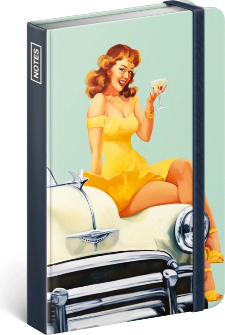 Elegantes Notizbuch mit Pin-up Girls-Motiv ist ideal für tägliche Notizen. Der feste Einband sorgt für Langlebigkeit, während das elastische Band den Inhalt vor unbeabsichtigtem Öffnen schützt.