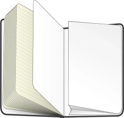 Gummiband, Innentasche und Lesebändchen halten Ihre Notizen und Unterlagen immer übersichtlich beisammen.