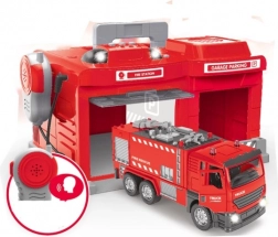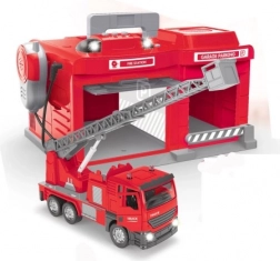 Dieses Feuerwehr-Spielset – Garage bringt Kindern jede Menge authentischen Spielspaß. Durch Drücken der Taste auf der Oberseite des Fahrzeugs werden blinkende Lichter und realistische Soundeffekte aktiviert, die dem Spiel zusätzliche Spannung verleihen. Die seitliche Taste startet gesprochene Ansagen, sodass Kinder noch lebendigere Abenteuer erleben können.