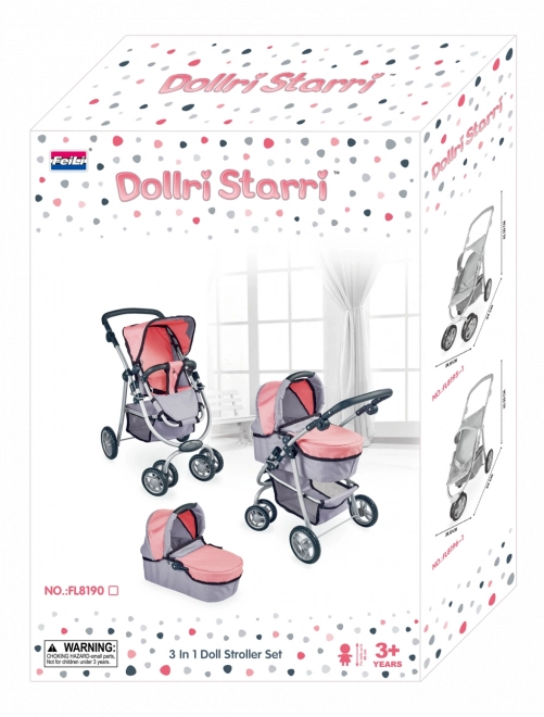 Kinderwagen für Puppen 3-in-1