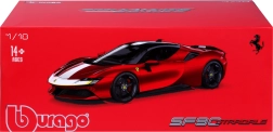 Das Modell Ferrari SF90 Stradale Assetto Fiorano 2020 von Bburago fängt den Charakter des ersten Plug-in-Hybriden von FERRARI originalgetreu ein. Die spezielle Assetto-Fiorano-Edition ist auf maximale Performance und Fahreigenschaften ausgerichtet – diese Merkmale spiegeln sich auch in der präzisen Modellumsetzung wider. Die rote Lackierung mit kontrastierenden Details betont das sportliche Design und die aerodynamischen Linien.