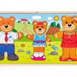 Fördern Sie mit diesem niedlichen Puzzle die Hand-Auge-Koordination und das Farbverständnis der Kinder. Kinder können den Bären Gesichter, Shirts und Hosen zusammenstellen und unzählige lustige Kombinationen schaffen.