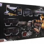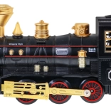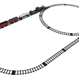 Dieses Zugset bietet eine elliptische Strecke mit Maßen von etwa 213 cm auf 106 cm. Beim Fahren stößt die Lokomotive nach dem Auffüllen mit Wasser (Pipette ist im Lieferumfang enthalten) Rauch aus dem Schornstein aus und das vordere Licht leuchtet. Einfache Streckenkopplung sorgt für eine sichere und langlebige Nutzung. Das Set enthält: