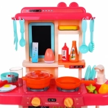 Das Set enthält eine Vielzahl an Zubehör, einschließlich Töpfen, Tellern, Löffeln und falschen Lebensmitteln, was endlosen Spielspaß ermöglicht.
