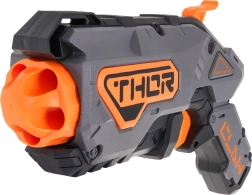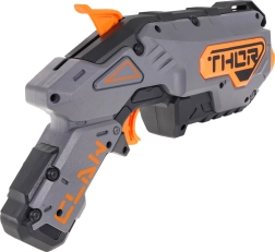 Der Blaster Blaze Storm ist im Stil des Futurismus gestaltet, der sowohl Kinder als auch Erwachsene begeistert. Das elegante graue und orangefarbene Design verleiht dem Produkt ein modernes Aussehen.