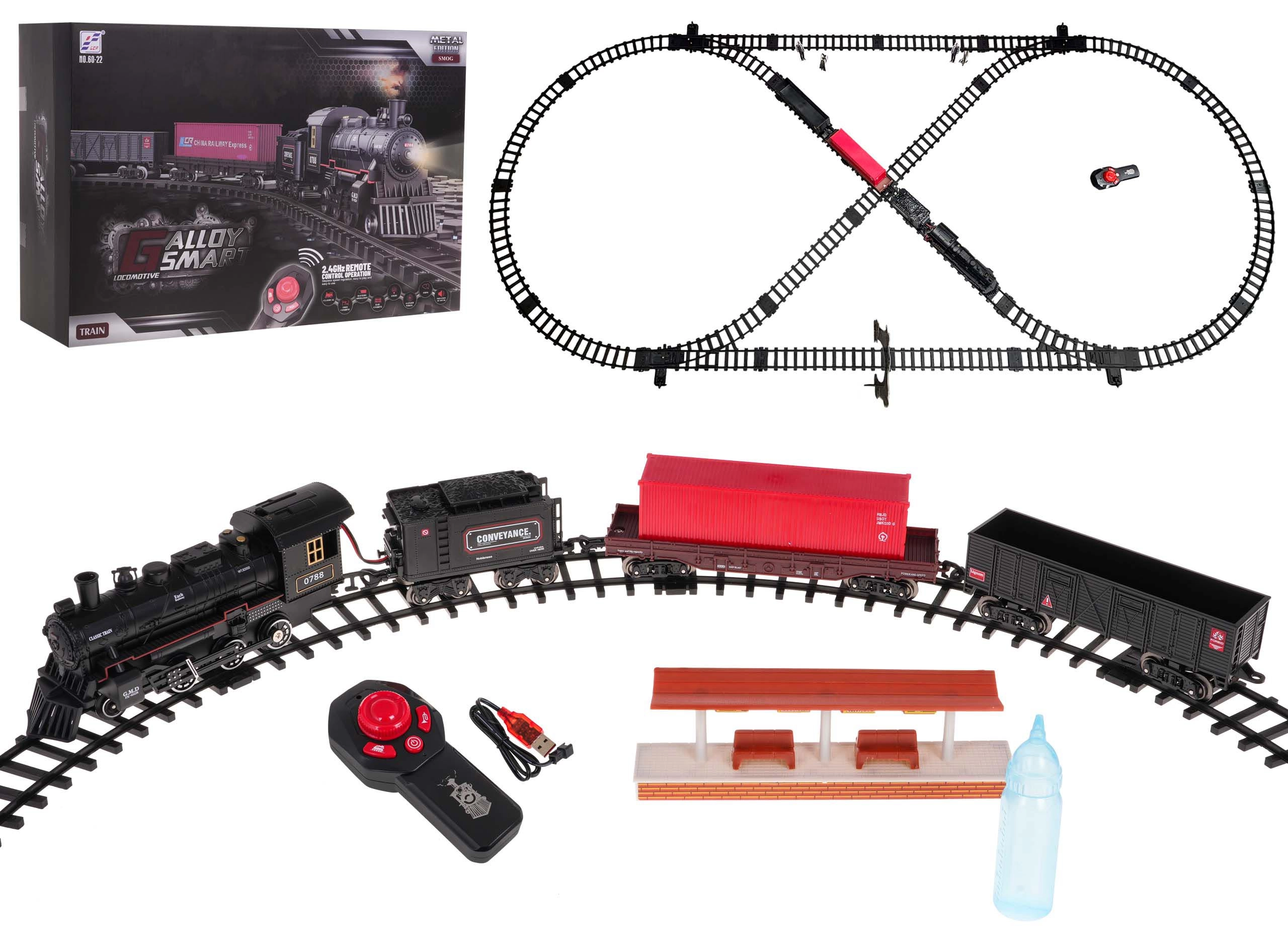 Retro-Spielzeugzug mit Rauch und Geräuschen, Set mit Schienen und Zubehör