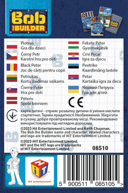 Das traditionelle Spiel Schwarzer Peter kehrt im beliebten Kindermotiv Bob der Baumeister zurück. Die Spieler teilen die Karten aus, bilden passende Paare und versuchen, alle Karten loszuwerden. Verliert, wer am Ende den Schwarzen Peter auf der Hand behält. Die einfachen Regeln garantieren schnellen und spannenden Spaß für die ganze Familie.