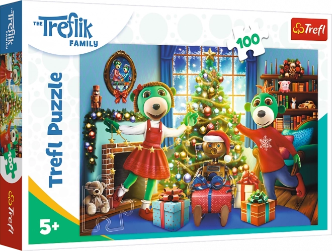 Puzzle „Winterliche Trefliks“ sind ideal für Kinder ab 3 Jahren, bestehen aus 100 Teilen und ergeben ein beliebtes Bild der Treflik-Figuren in einer winterlichen Märchenlandschaft.