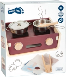 Dieser multifunktionale hölzerne Campingherd SMALL FOOT ist auf maximalen Spielspaß und Fähigkeitsentwicklung ausgelegt. Kinder können dank der zweiseitigen Konstruktion zwischen Kochen, Backen, Grillen und Spülen wechseln, wobei Ober- und Unterteil jeweils als Kocher oder Spüle dienen. Hochwertiges Holz in Kombination mit Metall und Textilien sorgt für Robustheit und Langlebigkeit.