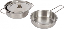 Mit dabei sind Pfanne, Topf mit Deckel, Zange, Pfannenwender, Küchentuch und 2 Kartonbögen mit Lebensmitteln. Der Kreativität kleiner Köchinnen und Köche sind keine Grenzen gesetzt.