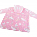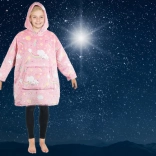 Die warme Kinderdecke mit Kapuze ist perfekt für kalte Abende, ob zu Hause vor dem Fernseher, am Feuer oder auf der Terrasse. Die große praktische Tasche erlaubt es, Kleinigkeiten aufzubewahren oder die Hände zu wärmen. Sie hat fluoreszierende Elemente, die sie zu einem lustigen Accessoire im Kleiderschrank der Kinder machen.