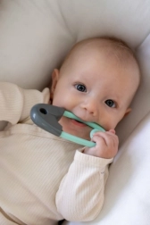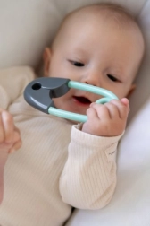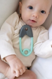 Kinder Rassel Sicherheitsnadel grau-türkis