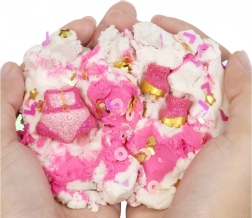 Rosa und weißer kinetischer Sand ermöglicht es Kindern, nach ihrer Fantasie zu gestalten und zu formen. Der Sand enthält zudem kleine dekorative Elemente.