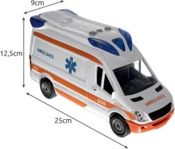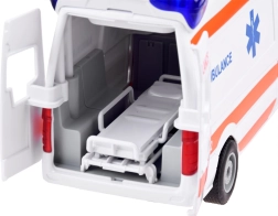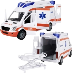 Diese Ambulanz aus Kunststoff bildet ein echtes Rettungsfahrzeug detailgetreu nach – vom Aufdruck bis zu den Funktionen. Kinder freuen sich über drei Tasten auf dem Dach zur Aktivierung von Licht und Sirenen, während öffnende vordere, seitliche und hintere Türen den detaillierten Innenraum zugänglich machen. Enthalten ist eine klapp- und ausziehbare Liege, mit der der Patient leicht in den Wagen „eingeladen“ werden kann.