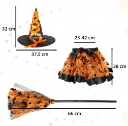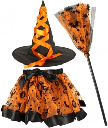 Alles, was eine kleine Hexe braucht: spitzer Hut, fluffiger Tutu-Rock und stylischer Besen im einheitlichen Design.
