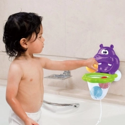 Badewannenspielzeug Nilpferd ist ein beliebtes Spielzeug für Kleinkinder, das ihre Geschicklichkeit und Motorik fördert. Dank der Saugnäpfe lässt es sich leicht an der Badewanne befestigen, und das Kind hat Spaß daran, bunte Bälle in das Nilpferd zu werfen.