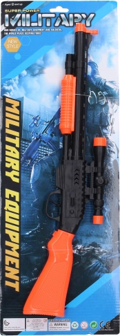 Dieses Kindergewehr ist eine hervorragende Wahl für kleine Fans von Actionspielen. Die 46 cm lange Konstruktion liegt gut in der Hand, der Schwungradmechanismus sorgt für den Betrieb ohne Batterien und eine einfache Bedienung. Ideal für sicheres Spielen im Garten, auf dem Spielplatz oder zu Hause.
