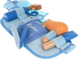 Holzfriseursatz ist für Kinder ab 3 Jahren geeignet. Das Set enthält verschiedene Friseurwerkzeuge aus sicheren Materialien, die Kreativität und die Entwicklung feinmotorischer Fähigkeiten fördern.